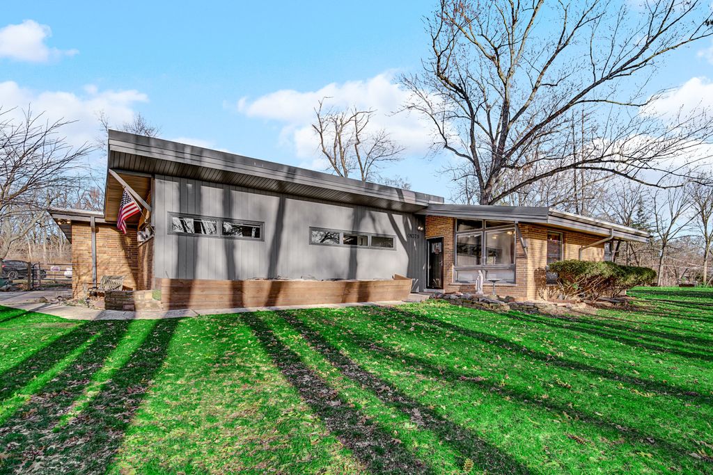 This rare gem offers the perfect blend of country and city living~ Horse lovers dream home~ THE HOME: Mid century modern ranch; open floor plan, vaulted and beamed ceiling, hardwood flooring, updated baths, sunroom off living room is perfect space for an office, play room or whatever your needs may be...furnace replaced in 2015, in 2020 full tear off roof replaced with commercial grade high R low-slope thermal Polyiso, and new thermal-efficient skylights, soffits and gutters, new appliances and central air in 2022~ THE BARN: 30x12 full cinderblock building converted to horse barn in 2022, features 2 stalls 12x11 and 12x10, electric and gas hookup~ Hay loft equipt to hold 100 bales of hay~ Sliding door lead to fenced pasture~ Double doors facing the street open to allow a car or machinery to enter building~ Full tear off barn roof replaced Feb 2023~ Gravel area behind barn allows for ample space to park 2 horse trailers~ THE LAND: Situated on almost 1 acre (135 X 300) Tranquil setting, fenced in yard, brick paver patio, fire pit, 3 car garage~ It's simply an oasis-like retreat with Prairie path entrance just at the end of the street, minutes to town, train, CDH, expressways and shopping... Amazing neighborhood~