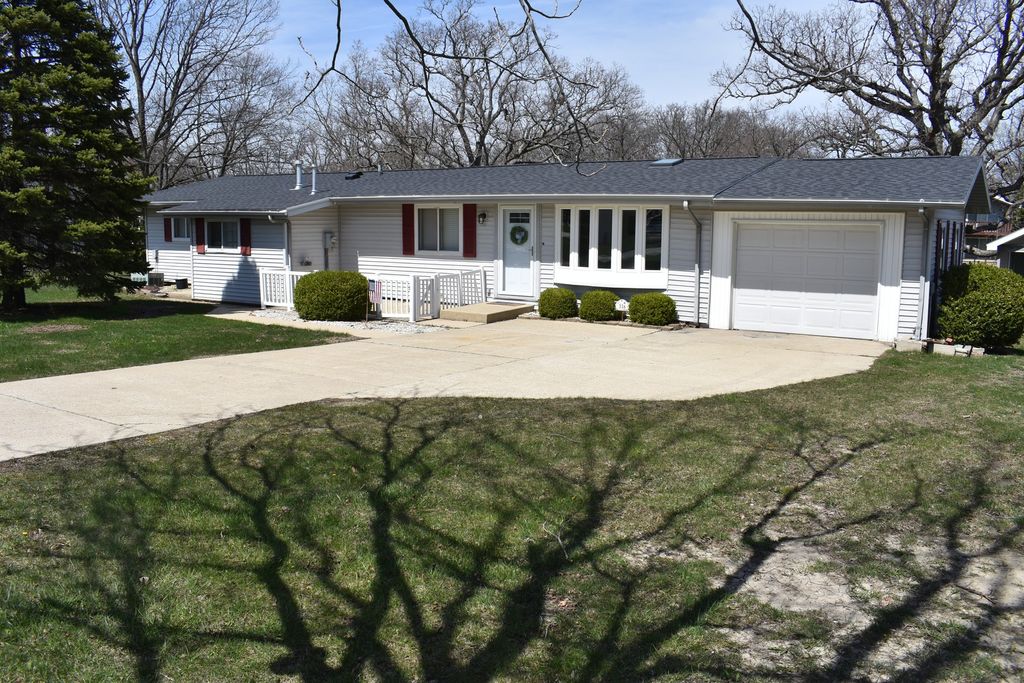 Lakefront Ranch home with 3 Bedrooms, Den/Office, 2 Baths & huge Great Room is nestled amongst tall trees on Lake Iroquois! Handsomely remodeled, it features an open floor plan that blends the Kitchen, Living Room, Dining Area & Deck with Screen Room all together for great entertaining! Lots of other usefull spaces- the front patio, Office & laundry room too. Nice backyard with private dock- great for swimming, fishing or boat out to main lake! Newer windows, roof, flooring & custom windows treatments! Lake Association provides it all- water and sewer, fishing, water skiing, swimming pool, beach and more. Ideal location 90 mins from Chicagoland, 30 mins from Champaign or 55 mins from Bloomington.