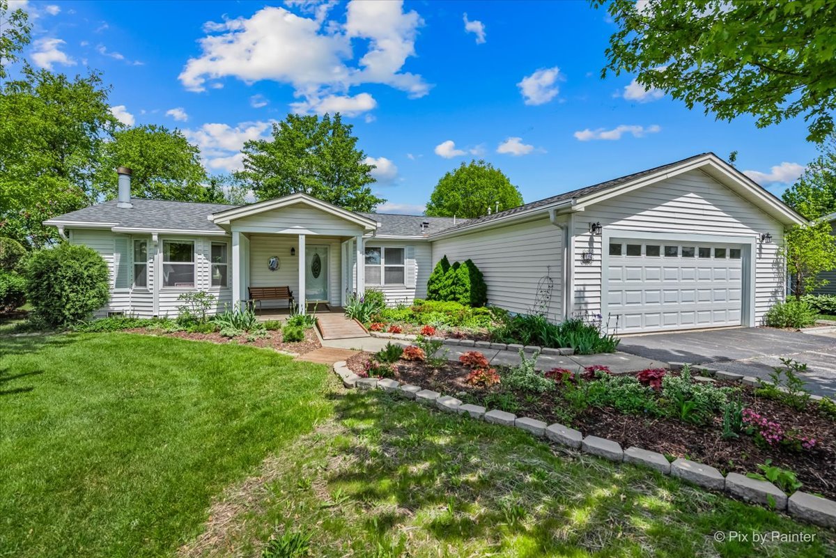 One of the most desirable locations in Saddlebrook Farms, a 55 and older community. Lake views from every room and on a private quiet cul de sac .Home has been updated within 3 years. Roof is 2 years old newer hot water heater, sump pump is new, the walk in heated tub has jets, quick drain, special shower heads, all the bells and whistles you can imagine. Updated kitchen. Master gardener lived here, the landscaping is very special, even fruit trees. You can have a dock on the lake, it is stocked every year. You can have a small motor even or canoe or kayak . The garage is oversized (seller was a wood worker and expanded it) and heated Even the driveway has enough room for 6 cars! There can be 2 primary bedroom if preferred or use, as they did, a family room. This home is totally handicapped accessible with wider doors and ramps.