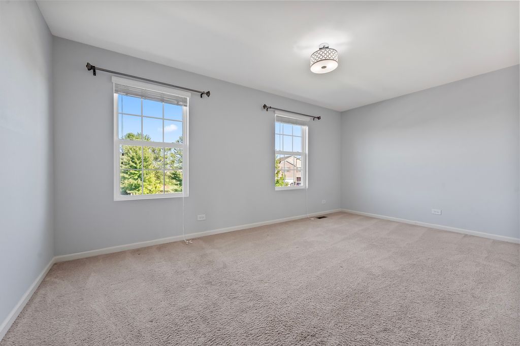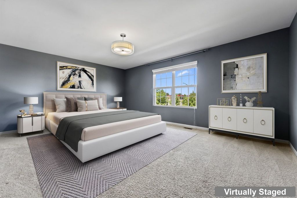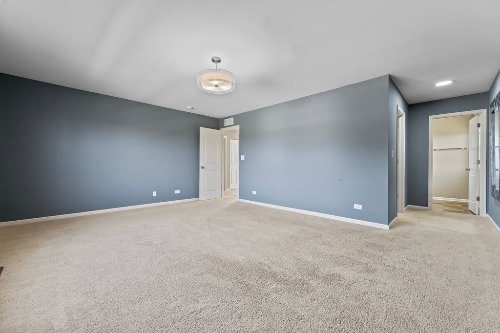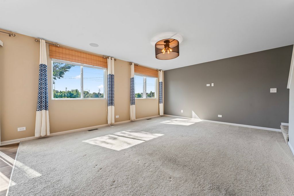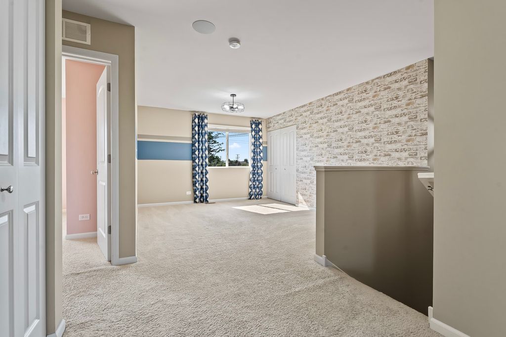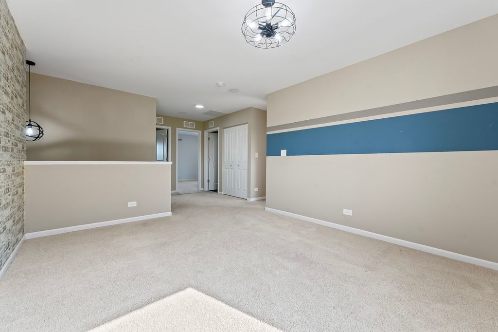 EAST-Facing, former model home now for sale in northwest Joliet, IL! Built in 2017 and used as a builder's sales office until 2020, this property is move-in ready! Featuring 3 spacious bedrooms and a large loft that can easily be converted to a 4th bedroom, you will enjoy all the modern touches. It has a super convenient location near the community entrance and you have the added privacy of extra green space and the entry monument on the north border of this lot. The exterior of the home is a timeless color scheme and low maintenance. Mature landscaping accents the sides of the home. A front porch allows for room to sit and enjoy the sunrise every morning. As you enter the residence you will immediately notice the open floor plan, starting with a nice-sized living room that could also be a formal dining room, with a view straight to the sliding glass door that leads to the backyard. The island kitchen has recently-updated quartz countertops, all stainless steel appliances, and designer laminate flooring and is open to the breakfast area and the family room, making for easy entertaining. The view of the yard will show you a custom, concrete stamped patio and premium, composite, 6ft fencing; all added in the last 4 years. Let's take a trip to the finished basement that has a large recreation room with plush carpet and a full bath. Storage space is aplenty with closets and another room that is finished and ready for any use such as a hobby room, workshop, or home office. The utility room has a rarely-seen exterior door leading up a staircase to the side yard of the home. Proceed up the stairs to the 2nd floor and take in the huge loft with a closet. This area is versatile for endless possibilities or a future 4th bedroom. The laundry room is on this level and conveniently near all the bedrooms. Each bedroom has ample closet space, including custom built-in organizers in 2 of them. The primary suite has plenty of room for a full bedroom set. The en suite has a "walk-in" closet and private bath with a custom shower and double vanity. So much to see here! You are only 1.5 miles from the Route 59 shopping and dining corridor and within 5 miles from two different I-55 interchanges. The intermediate and elementary schools are just down the street. This property is ready for the next owner! Don't miss the 3D walk-through tour!