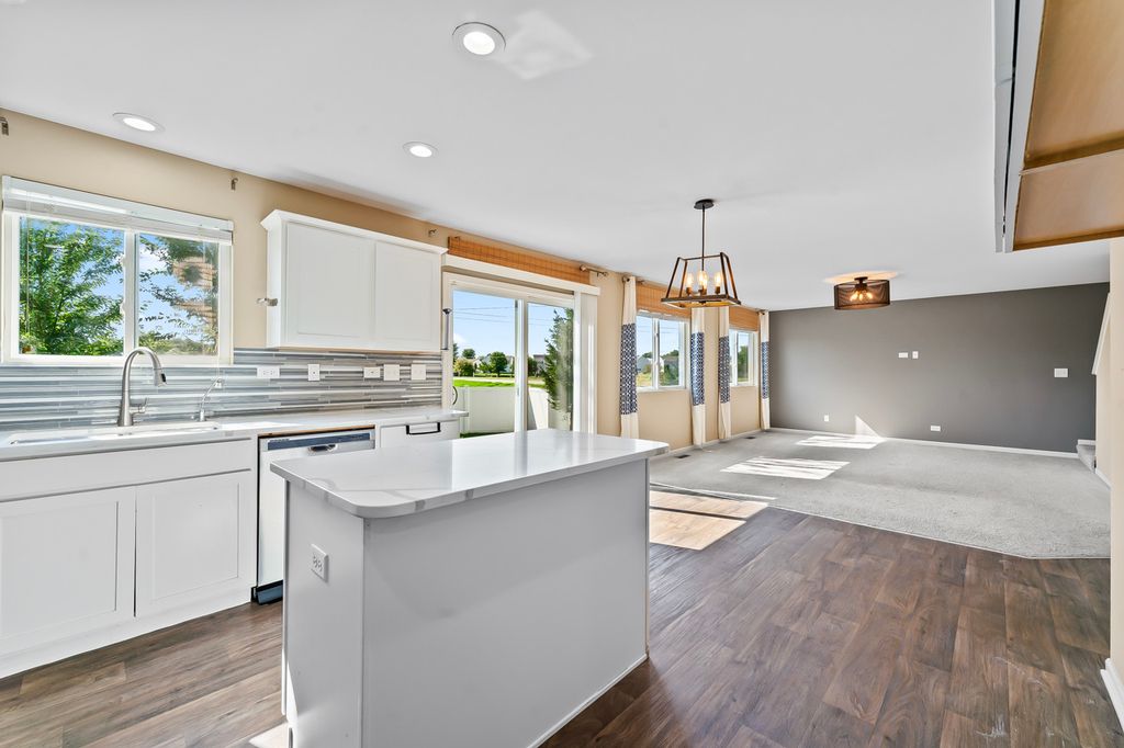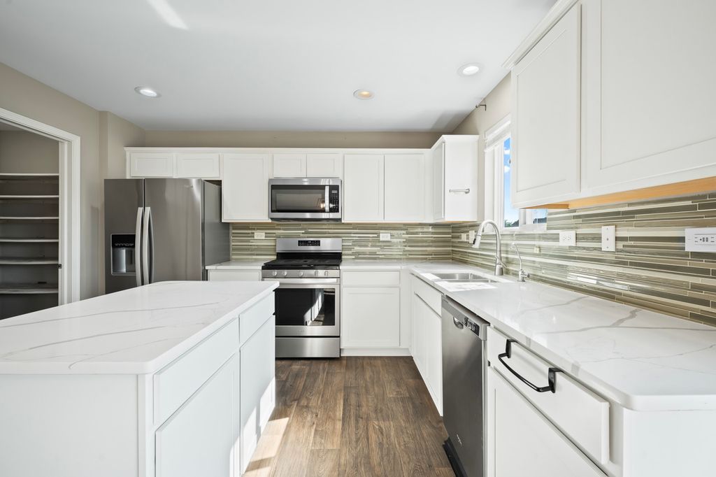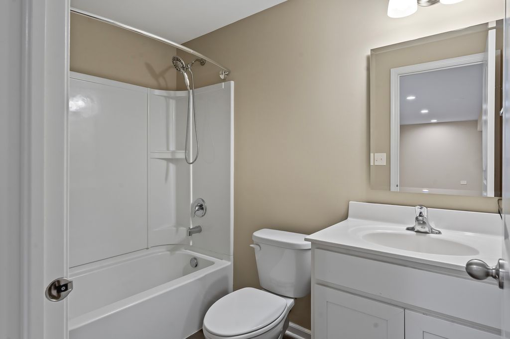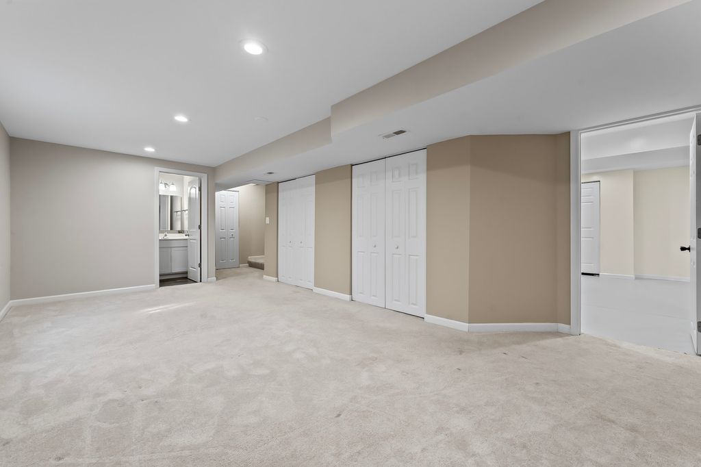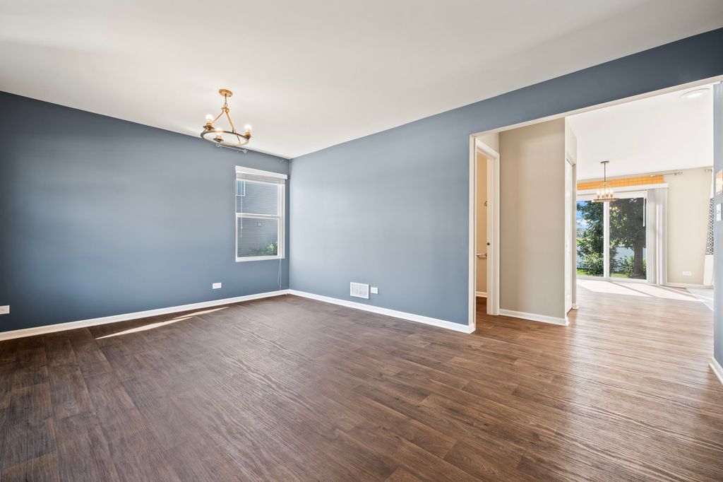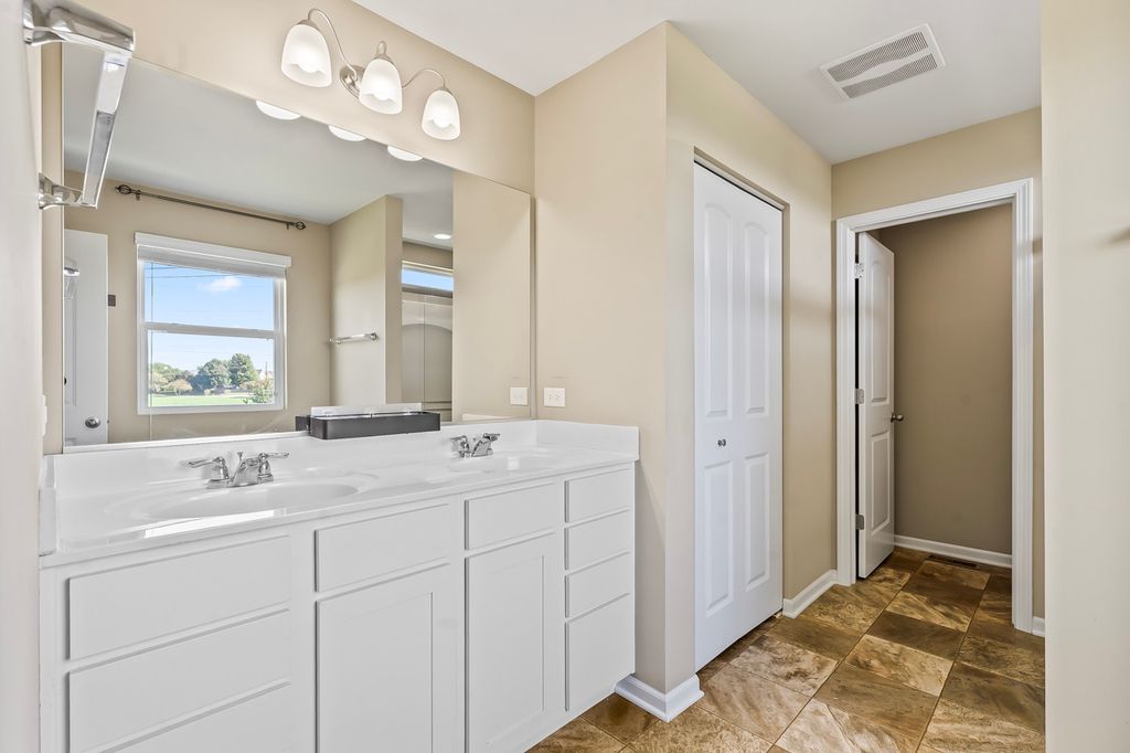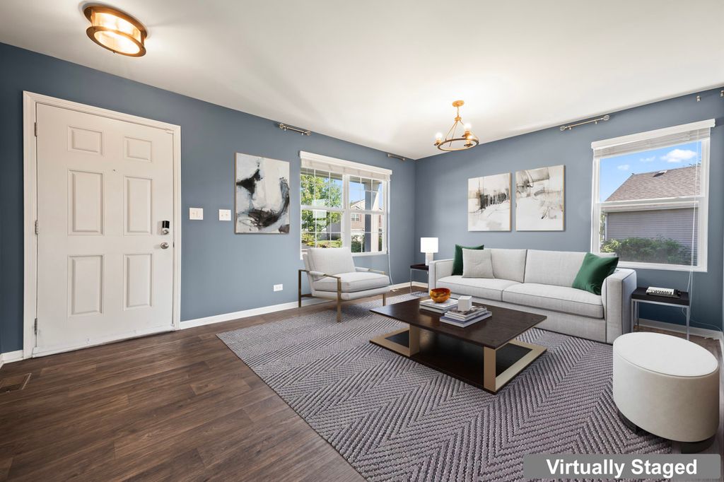 EAST-Facing, former model home now for sale in northwest Joliet, IL! Built in 2017 and used as a builder's sales office until 2020, this property is move-in ready! Featuring 3 spacious bedrooms and a large loft that can easily be converted to a 4th bedroom, you will enjoy all the modern touches. It has a super convenient location near the community entrance and you have the added privacy of extra green space and the entry monument on the north border of this lot. The exterior of the home is a timeless color scheme and low maintenance. Mature landscaping accents the sides of the home. A front porch allows for room to sit and enjoy the sunrise every morning. As you enter the residence you will immediately notice the open floor plan, starting with a nice-sized living room that could also be a formal dining room, with a view straight to the sliding glass door that leads to the backyard. The island kitchen has recently-updated quartz countertops, all stainless steel appliances, and designer laminate flooring and is open to the breakfast area and the family room, making for easy entertaining. The view of the yard will show you a custom, concrete stamped patio and premium, composite, 6ft fencing; all added in the last 4 years. Let's take a trip to the finished basement that has a large recreation room with plush carpet and a full bath. Storage space is aplenty with closets and another room that is finished and ready for any use such as a hobby room, workshop, or home office. The utility room has a rarely-seen exterior door leading up a staircase to the side yard of the home. Proceed up the stairs to the 2nd floor and take in the huge loft with a closet. This area is versatile for endless possibilities or a future 4th bedroom. The laundry room is on this level and conveniently near all the bedrooms. Each bedroom has ample closet space, including custom built-in organizers in 2 of them. The primary suite has plenty of room for a full bedroom set. The en suite has a "walk-in" closet and private bath with a custom shower and double vanity. So much to see here! You are only 1.5 miles from the Route 59 shopping and dining corridor and within 5 miles from two different I-55 interchanges. The intermediate and elementary schools are just down the street. This property is ready for the next owner! Don't miss the 3D walk-through tour!