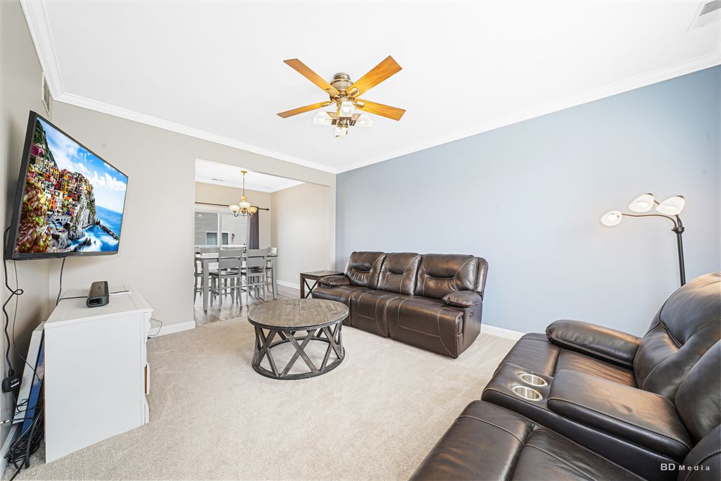 THIS WELL KEPT TOWNHOME IS IN POPULAR KIPLING ESTATES WITH OPEN GREEN AREA IN FRONT AND FEATURES TRENDING FINISHES AND COLORS THROUGHOUT. THE KITCHEN FEATURES 42" CABINETS WITH PLENTY OF STORAGE. THIS HOME FEATURES NEW CROWN MOLDING, CARPET & VINYL FLOORING AND FRESH PAINT(2024) CEILING FANS IN BOTH BEDROOMS & CLOSETS W/BUILT INS.THE 2 CAR ATTACHED GARAGE W/PLENTY OF SPACE FOR STORAGE IS A GREAT FEATURE. NEW ROOF INSTALLED (2017) THIS PROPERTY IS WALKING DISTANCE FROM CLUBHOUSE W/POOL, FITNESS CENTER & TENNIS COURTS. NICELY LANDSCAPED SUBDIVISION W/WALKING PATHS, PONDS & PARKS NEARBY MINOOKA SCHOOLS!