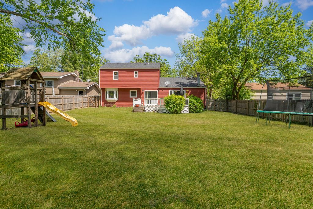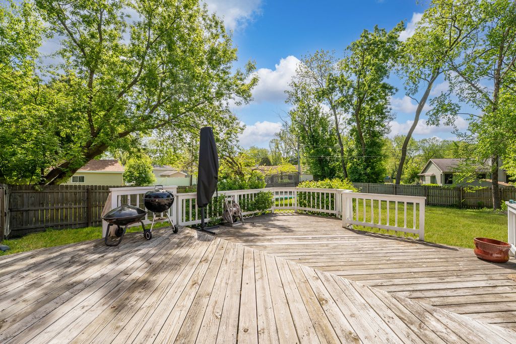 Sharply appointed and ready for you! Rock the evenings away on the beautiful covered front porch. Beautiful home with a fantastic fenced-in yard & deck for all of your outdoor entertaining. Recent updates in approximately the last 8 years include furnace, a/c, water heater, roof & siding. New fence and LVT flooring on entire first floor approx. 1 year old. Other features include LED lighting, stainless appliances, and solid surface counters. Family room offers a raised hearth fireplace and sweeping views of the parklike yard. Enjoy the spacious room sizes and nice interior flow. Grayslake North High School. Enjoy the nearby forest preserve bike and hiking trails! Home Sweet Home!