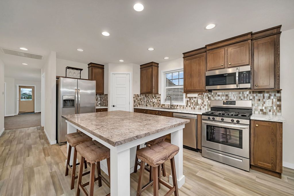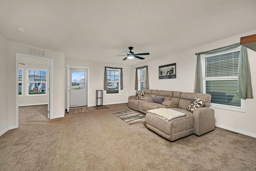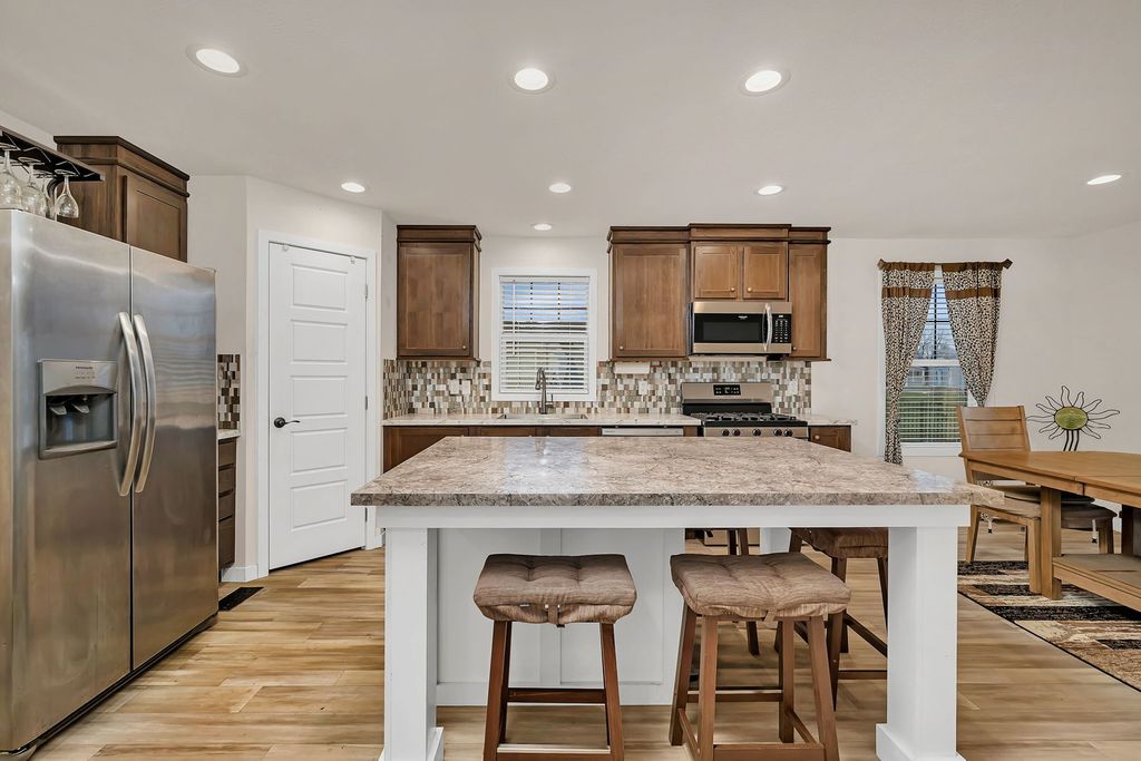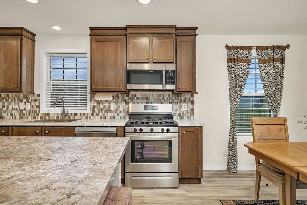Welcome to this impressive Remington Woods home just over 1500 sq ft! Charming covered front porch with ample space. Large living room with lots of window make for great natural light & a relaxing wall mount fireplace. Then it's on to the amazing kitchen! Huge gourmet island, surrounded by loads of cabinets. Nice walk in pantry & still room for a formal dining table overlooking the back yard from the patio door. All stainless steel appliances. Roomy master bedroom features a private bath, large walk in shower & dual sinks. The additional bedroom are also very nice size. The laundry room with many cabinets leads to an exterior door across from the garage service door. The fully fenced back yard is very large, has a great view of a huge green space. Definitely no neighbors behind you! Oversized 20' x 24' garage with epoxy floors and plenty of lighting. The storage shed (9x7) is also large & features 2 separate large entry doors. Peaceful setting, walking trails, impressive club house with activities, work out facility, large area to host parties. Adult community 55 +, close to I-55 & I-80, all daily amenities. This is a great place to call home!