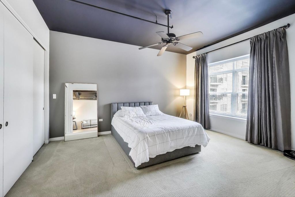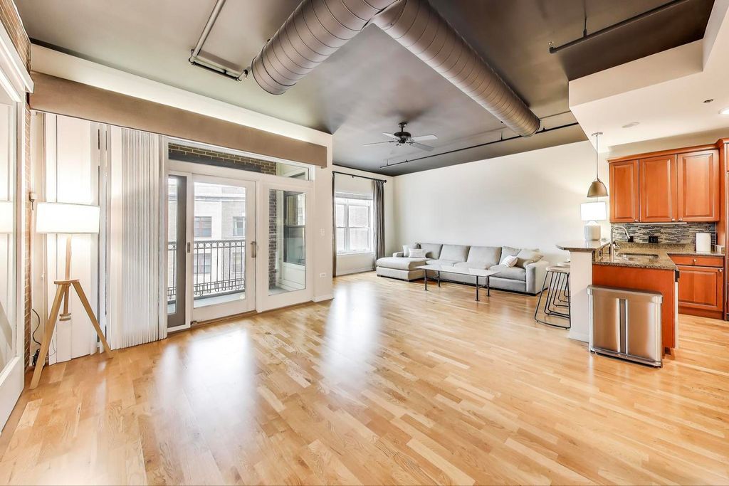 Great opportunity! Buyer's financing fell through. Ideally located in the heart of Downtown Palatine, this spacious top-floor loft offers unmatched convenience just steps from the Metra, restaurants, shopping, parks, and the terrific Saturday Farmer's Market. This is the largest one-bedroom layout in the building, and one of only three units across the hall from the expansive landscaped rooftop deck with lovely views. Designed with style and comfort in mind, the open floor plan features soaring 10-foot exposed ceilings, hardwood floors in the main living area, ceiling fans, and in-floor heating along the exterior wall. The kitchen boasts 42" cherry cabinets with crown molding, granite countertops, stainless steel appliances including a Sub-Zero refrigerator with custom panel, gas range, and accent lighting. The bathroom is beautifully appointed with a double vanity, storage towers, crown molding, and a large, tiled shower with 84" frameless glass doors. The bedroom includes a wall of closets with California Closet organizers and plush carpeting. A private balcony with a retractable screen overlooks the courtyard. Building amenities include a party room, sundeck, and receiving room. Additional perks include a heated underground parking space and a private storage locker. Experience the best of urban living in this exceptional Downtown Palatine residence where location, style, and convenience come together seamlessly.