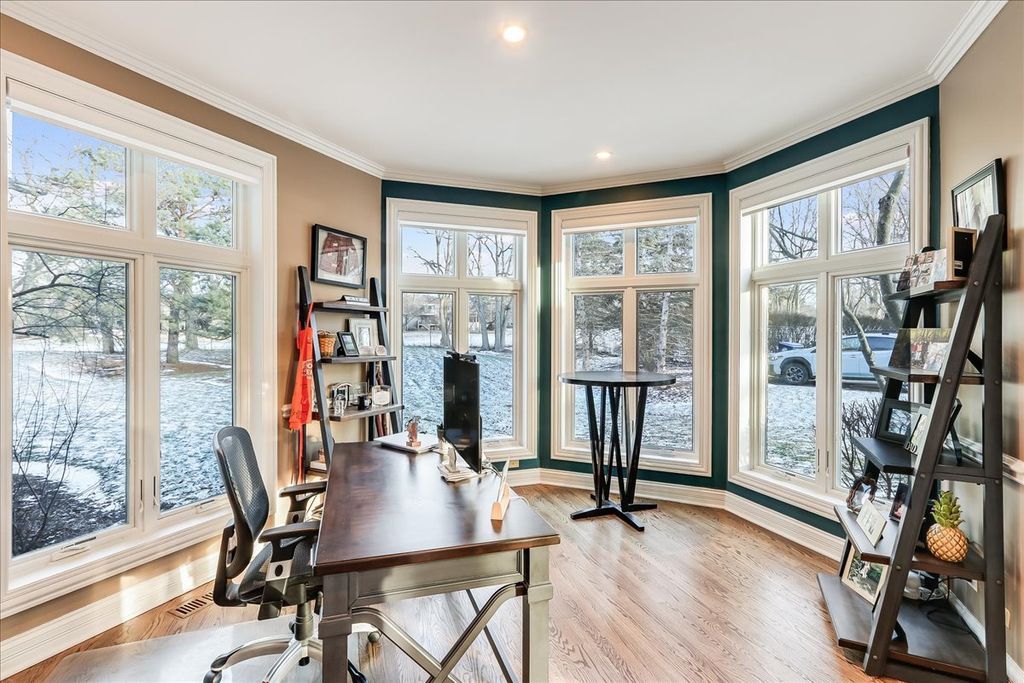 Nestled in the serene neighborhood of Wedgewood Trails, 27022 West Coventry Court is a stunning home that perfectly combines elegance and functionality. This home boasts modern upgrades, including new windows and a new roof in 2023, with future updates such as new water heaters in 2025 and a new garage heater in 2026. The gourmet kitchen is a chef's dream, featuring high-end appliances, a subzero refrigerator, and exquisite Amish cabinets. The spacious interior includes 10-foot ceilings on the first floor, hardwood floors, a sunroom filled with natural light from skylights, a convenient second-floor laundry room, a cozy second-floor loft area, and large bedrooms. Enjoy the warmth and ambiance of three fireplaces and the convenience of both a main and back staircase. Additionally, the home offers a private in-home exercise room and a first floor office, ideal for a versatile lifestyle. Entertain and relax on the wrap-around porch, step out onto the meticulously designed hardscape patio, or admire the scenic surroundings with miles of walking trails and easy access to the beautiful Grassy Lake Forest Preserve. The four-car garage provides ample space for vehicles and storage, perfectly complementing this luxurious property. Conveniently located to downtown Barrington, Fox River Grove, or Lake Zurich for ample shopping and commuting needs. Sophistication, comfort, and practicality come together in this exceptional home. Don't miss the opportunity to make it yours!