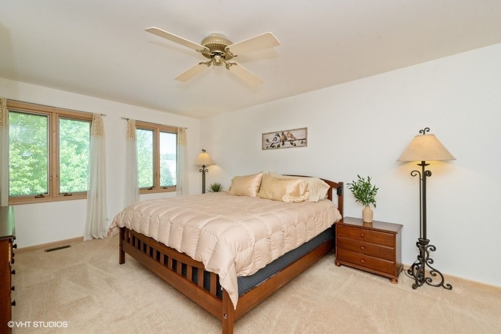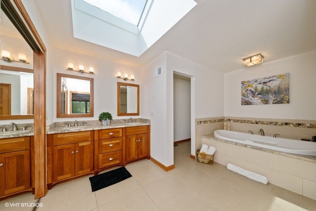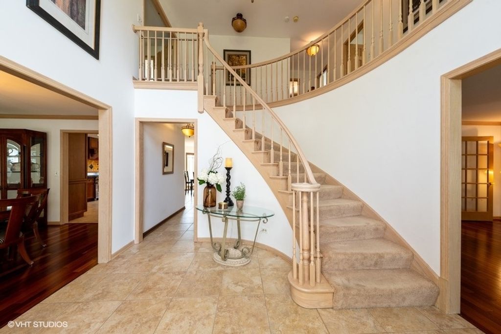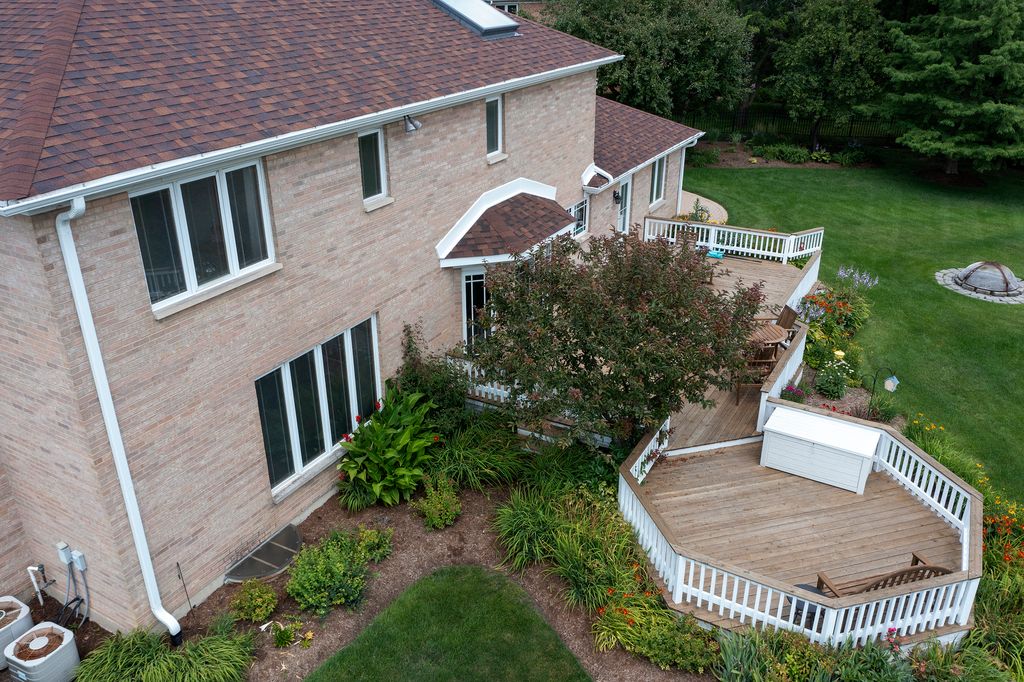 Welcome to 307 Anne Ct, a beautifully appointed 5-bedroom, 3.5-bath home tucked at the end of a quiet cul-de-sac in desirable Prospect Heights. Set on a professionally landscaped half-acre lot, this expansive residence offers over 3,000 square feet of refined living space with an open layout ideal for both entertaining and everyday living. The main floor impresses with Brazilian cherry hardwood flooring, a spacious formal living area, and a sun-drenched family room that flows effortlessly into a gourmet kitchen featuring porcelain tile flooring, a Wolf range, high-end stainless refrigerator, elegant finishes, and copper fixtures that add warmth and character throughout. Upstairs, the oversized primary suite includes a spa-style bath with a Jacuzzi tub and a generous walk-in closet. The fully finished basement adds valuable recreation space with room for entertaining, working out, or relaxing, and features an in-law arrangement for added versatility. Outdoors, enjoy a sprawling deck overlooking a wide open backyard-perfect for gatherings, play, or peaceful mornings. The home is minutes from expressways, shopping, dining, and conveniences, yet feels like a private retreat. Recent improvements and upgrades include a new roof and gutters, freshly painted interior (2024), smart thermostats, smart sprinkler system, and a whole-house water filtration system with reverse osmosis. Additional highlights include a 3-car garage, battery backup for the sump pump, deck stained in 2023, and updated appliances including a fridge (2023) and water heater (2022). Thoughtfully maintained and move-in ready, this home offers a rare combination of privacy, space, and timeless style.
