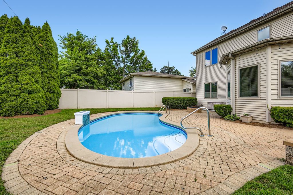 Welcome to this pristine 4-bedroom, 4-bath home set on a meticulously landscaped lot in Bensenville. Beautiful hardwood floors flow throughout the home, complemented by solid maple cabinetry and granite countertops in every room-including the bathrooms. The gourmet kitchen boasts Jenn-Air Pro stainless steel appliances, granite island, and opens to a spacious family room with a cozy gas fireplace. Entertain with ease in the formal dining room or relax in the primary suite with its own fireplace and spa-inspired bath. All closets feature professionally designed organizers for maximum functionality. The finished basement includes a full bathroom, perfect for guests or extended living. Outdoors, enjoy your private retreat with a 6' vinyl privacy fence, spectacular in-ground pool, and expansive paver patio surrounded by lush landscaping. A true blend of comfort, style, and resort-style living.