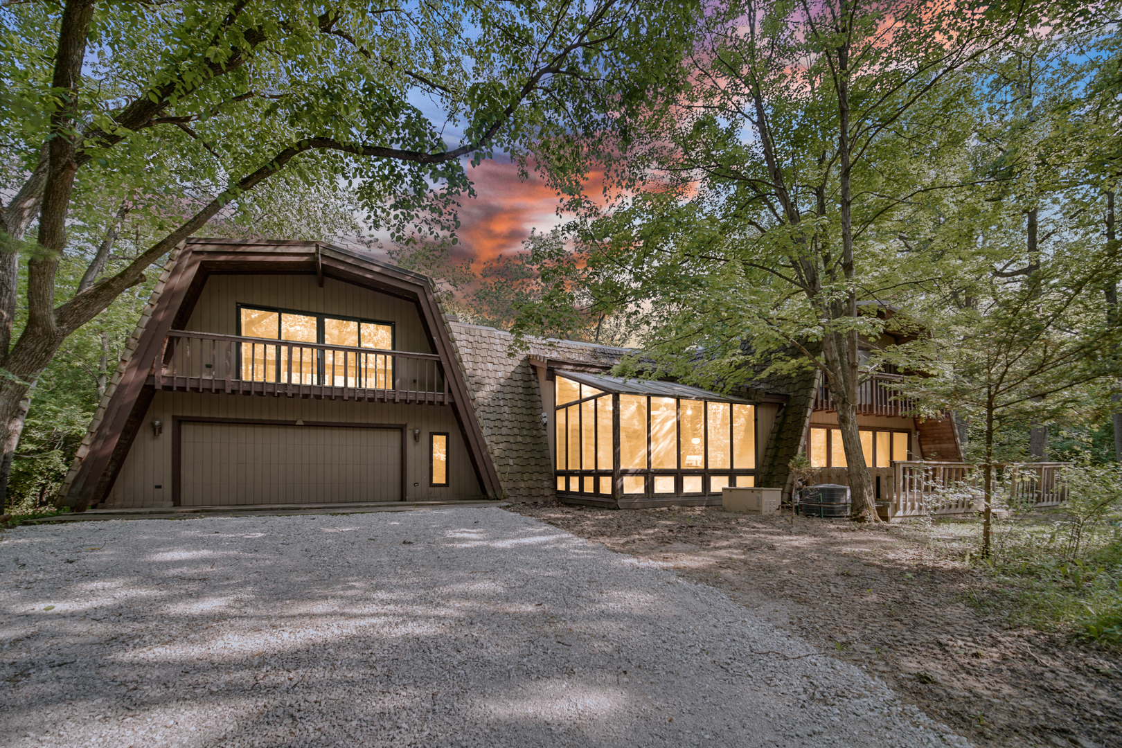 Great Location! Unique in Every Way 2 Story Home Situated on 1.74 acres with City Water and Sewer. Wooded Lot with Private Entry and Full Privacy All Year Round in Desirable Highland Park. Open Floor Plan with Over 4000 Sq Ft. Impressive High Wood Ceilings, Beams and Walls. Charm and Character Throughout First and Second Floor. Spacious Rooms with Oversized Windows. Modern White Kitchen with Cabinets Galore, Lots of Countertop Space, Under Cabinets Lighting, Multiple Closets, Cozy Breakfast Area. Formal Dining Room with Butler Pantry. Dramatic Sunroom. 2 Story Living Room with Brick Fireplace, Floor to Ceiling Windows and Sliders to Oversized Deck Overlooking Huge Yard. Primary Bedroom with Sitting/Dressing Area with Large Walk-in Closets and Redone Bath with Custom Standing Shower. Two Other Bedrooms with Vaulted Ceilings, Roomy Closets, Large Balcony and Full Shared Bath. Possible 4th Bedroom Over Garage. Multiple Decks with Gorgeous Views of Nature. Storage Sheds and Amazing Outdoor Building, Perfect Space for Workshop or Any of Hobbies You Have. Backup Generator System Included. Sold "as is". Lots of Potential. Do Not Miss Opportunity. You Will Be Impressed. A Rare Find!