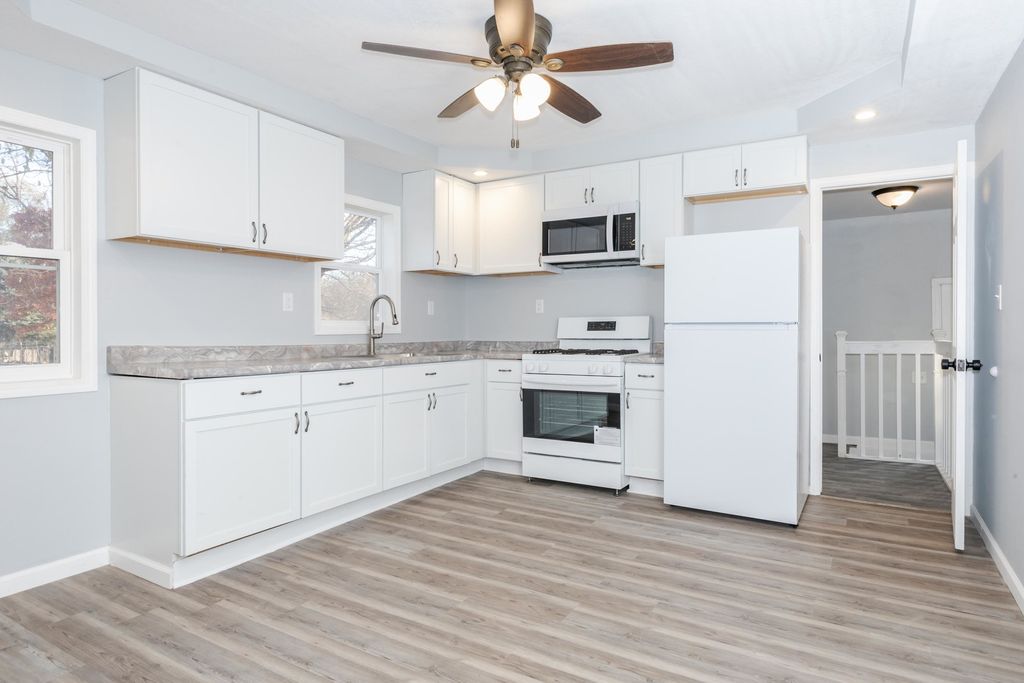 Move right into this 3 Bedroom, 1 bath newly renovated home located on a .65 acre lot with a 2 car detached garage. Updates include new plumbing, drywall, windows, siding, roof, furnace, central air, water heater, all new kitchen, bath, flooring, paint, appliances, garage doors and garage floor among other updates. Spacious rooms in this home! Main level has a bedroom, bathroom and utility. Partial basement area for additional storage and backdoor entrance to large backyard and garage. Ample parking as well.