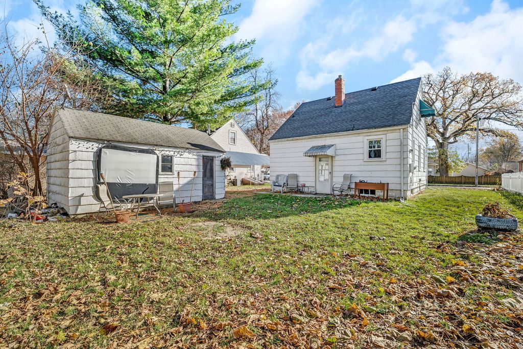 Welcome home to this charming 3-bedroom Cape Cod cutie located in a wonderful community just minutes from vibrant downtown dining and shopping! Original hardwood floors greet you as you step into the spacious living room with an adjoining dining area, perfect for cozy gatherings and everyday living. The light-filled kitchen features freshly painted cabinets and a convenient eating area/table space. A main-floor bedroom and full bath offer sought-after flexibility and ease. Head upstairs to find two additional inviting bedrooms. A full basement provides excellent storage options, while the single-car detached garage adds extra convenience. Enjoy outdoor living in the generous backyard complete with a patio and firepit-ideal for relaxing evenings or entertaining friends. Major updates include a new roof, new windows, and a tankless water heater, giving you peace of mind for years to come. Why rent when you can own this adorable, well-maintained home? Come see its charm for yourself!