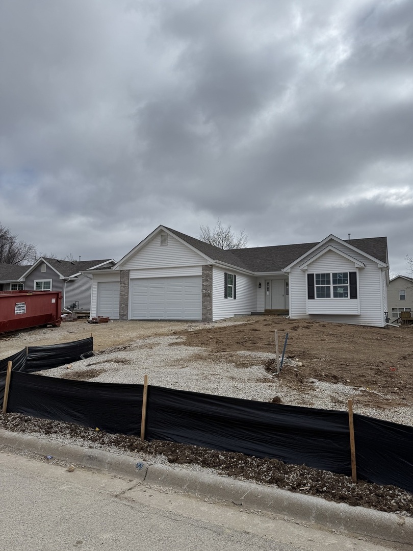 NEW CONSTRUCTION IN POPLAR GROVE! 1803 SQ. FT. SPLIT BEDROOM. OPEN CONCEPT GREAT ROOM RANCH. LARGE DINE IN KITCHEN WITH QUARTZ COUNTER AND ISLAND WITH BREAKFAST BAR, PANTRY, STAINLESS RANGE, DISHWASHER AND MICROWAVE. MASTER BEDROOM HAS PRIVATE BATH WITH DOUBLE BOWL SINKS AND DOUBLE CLOSETS, 1ST FLOOR LAUNDRY, 2-PANEL WHITE DOORS, TRIM AND CABINETS, DECK, CENTRAL AIR, BASEMENT, DROP ZONE OFF OF 3-CAR GARAGE ENTRANCE, BLACKTOP DRIVE. AGENT OWNED