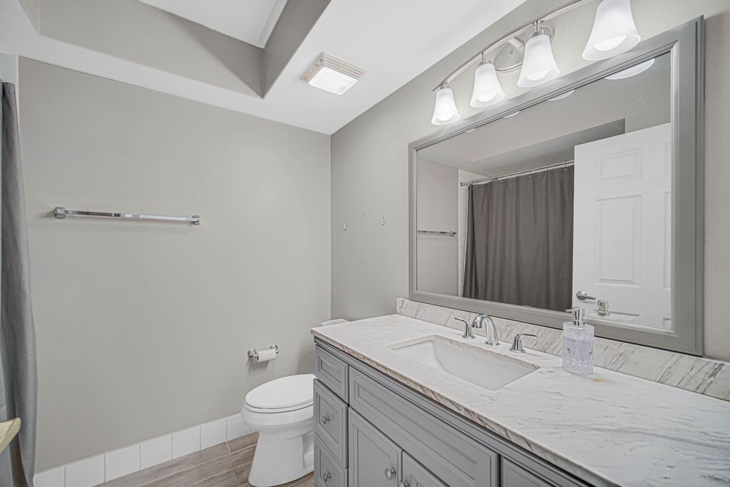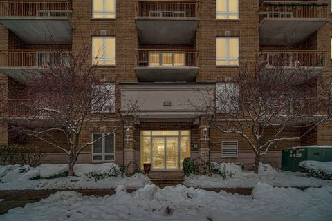 Superb 4th floor. Remodeled and extremely well maintained 2-bedrooms 2 full ceramic bath, beautiful unit with garage in the heart of downtown Des Plaines. Great open layout. Separate living and dining room leading to private balcony. Open kitchen with custom light fixture, white cabinets, granite c-tops and top of the line SS appliances. Huge Master Suite with private bathroom and walk-in closet. Wood laminate floors thru out. Washer - Dryer in unit. Lots of closets. Heated garage and storage right next to it. Walking distance to Metra, Shopping, and Downtown Des Plaines.