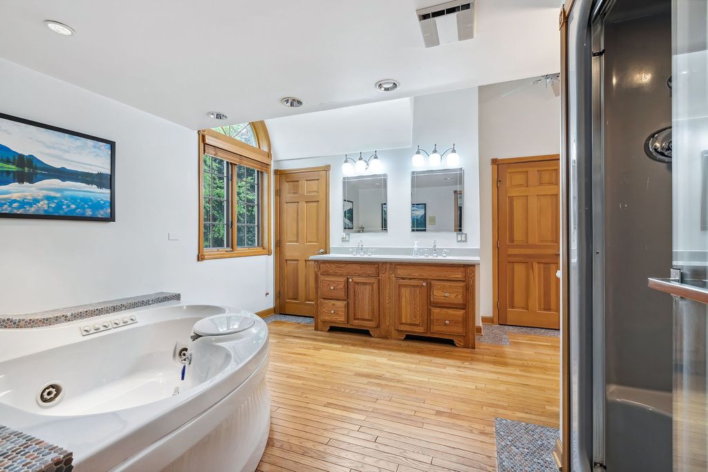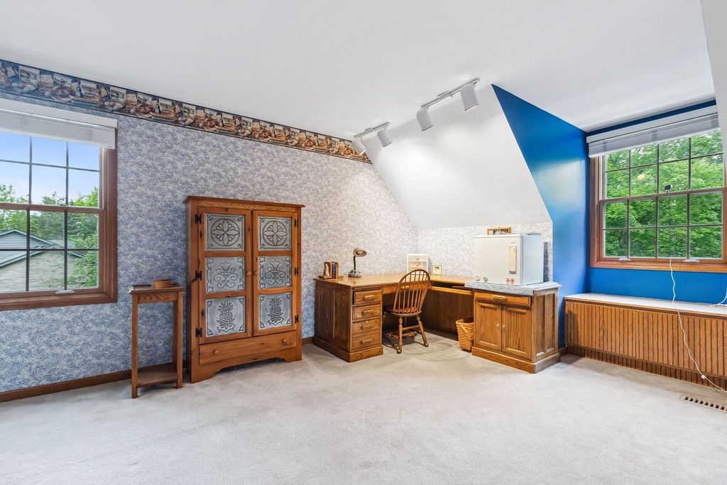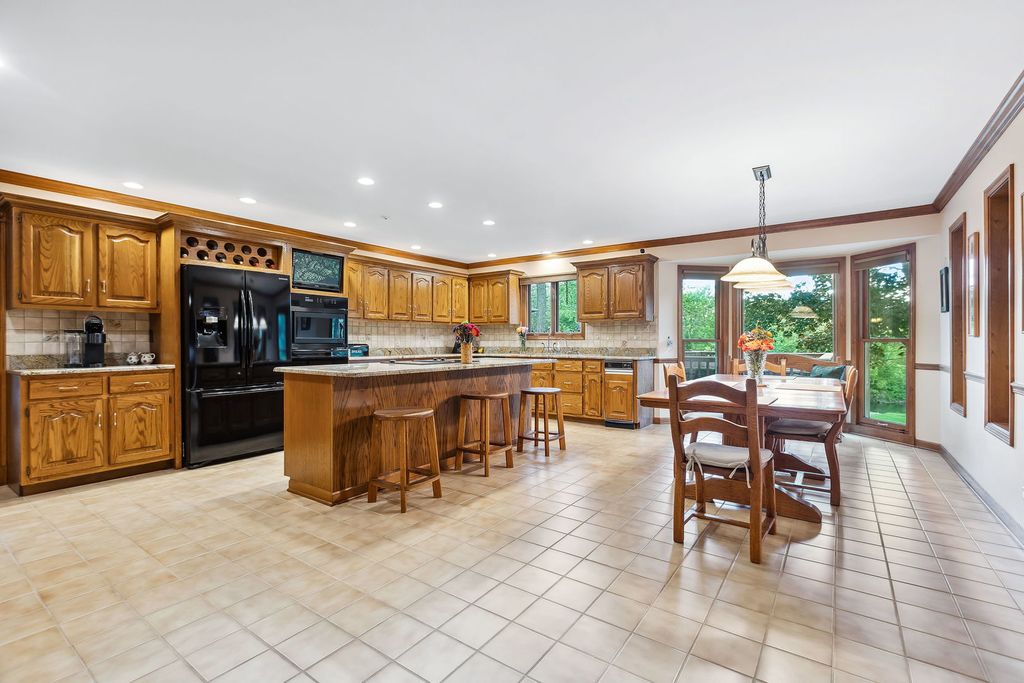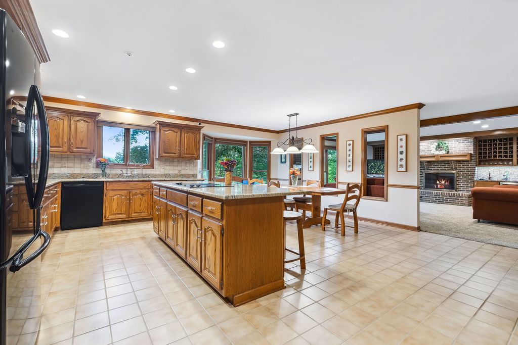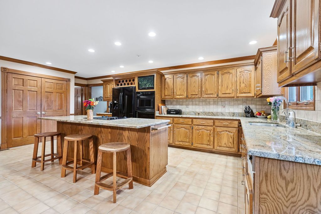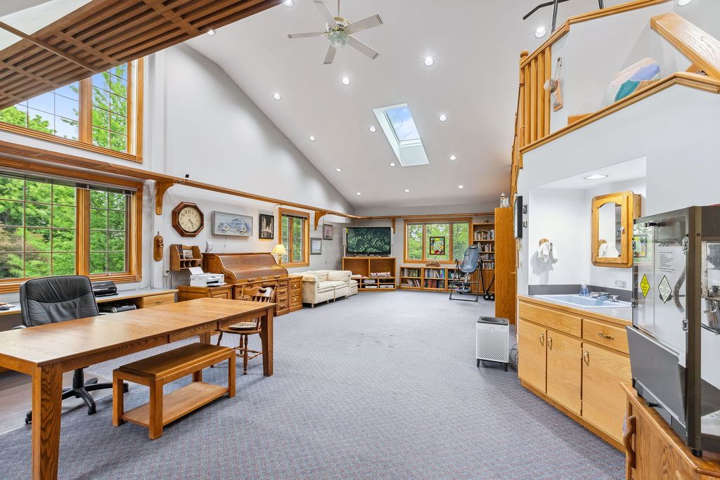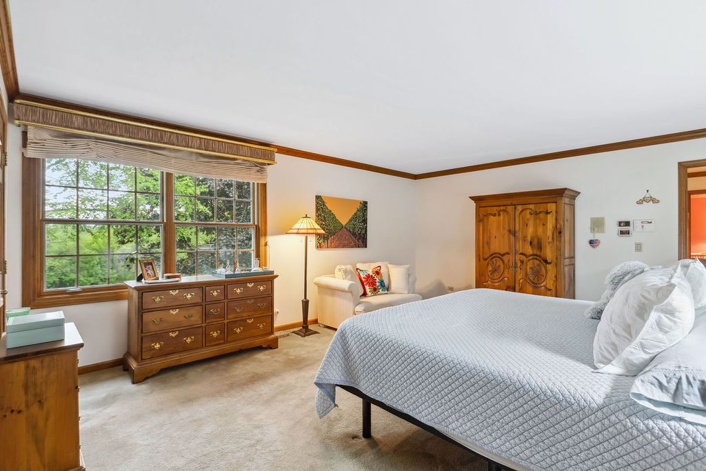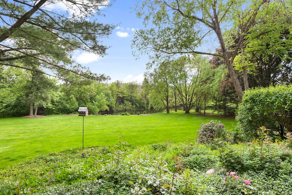 Embark on this stunning waterfront estate located in S. Barrington's Greensward community where a life of luxury and relaxation awaits! Embedded well into the community is a circle drive that welcomes guests to an all-brick front elevation with charming dormers and an impressive 2-story entry. Adjacent to the foyer is an elegant living room with floor to ceiling windows overlooking the yard and a gorgeous fireplace. On the opposing side is a formal dining room with floor to ceiling windows embracing an abundance of natural light reflecting off the hardwood floors. The dining room conveniently unfolds to an expansive eat-in kitchen with 36" solid oak cabinets, granite counters, sprawling breakfast bar and black appliances. The kitchen design is brilliant with an open concept to the family room making entertaining an absolute pleasure. The family room is finished with exposed wood beams, brick fireplace, wet bar with beverage fridge, custom built-ins and floor to ceiling windows with aerial views of the yard. The main floor also showcases a powder room, massive laundry/craft room and a back staircase to an incredible vaulted nanny's quarters or 5th bedroom. The second floor is equally impressive with 4 additional spacious bedrooms. 1 of 4 bedrooms is the primary suite with double vanities, whirlpool, separate shower and a phenomenal walk-in closet. The remaining 3 bedrooms share a hall bathroom with double vanities and a separate shower/tub room. Full finished walkout lower level with designated billiard area, media room, 6th bedroom, full bathroom and incredible storage space. 4-car heated garage! Serene yard with composite decking, built-in benches and firepit! Plenty of space to entertain while enjoying access to the stocked pond ideal for fishing or paddle boating. New Marvin windows and Trane HVAC in 2024!