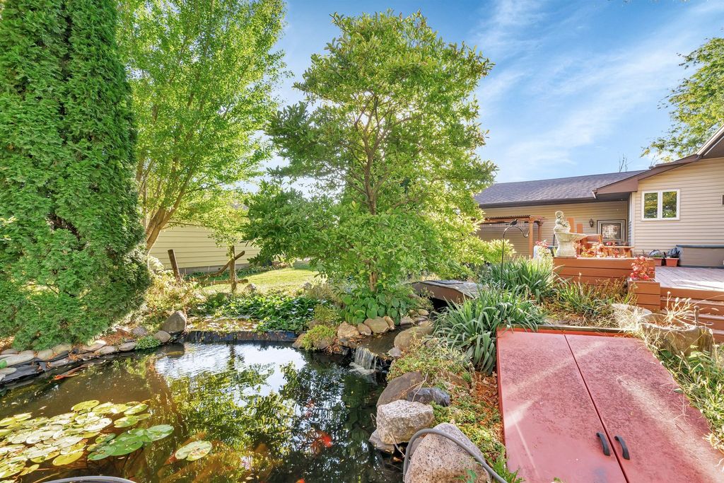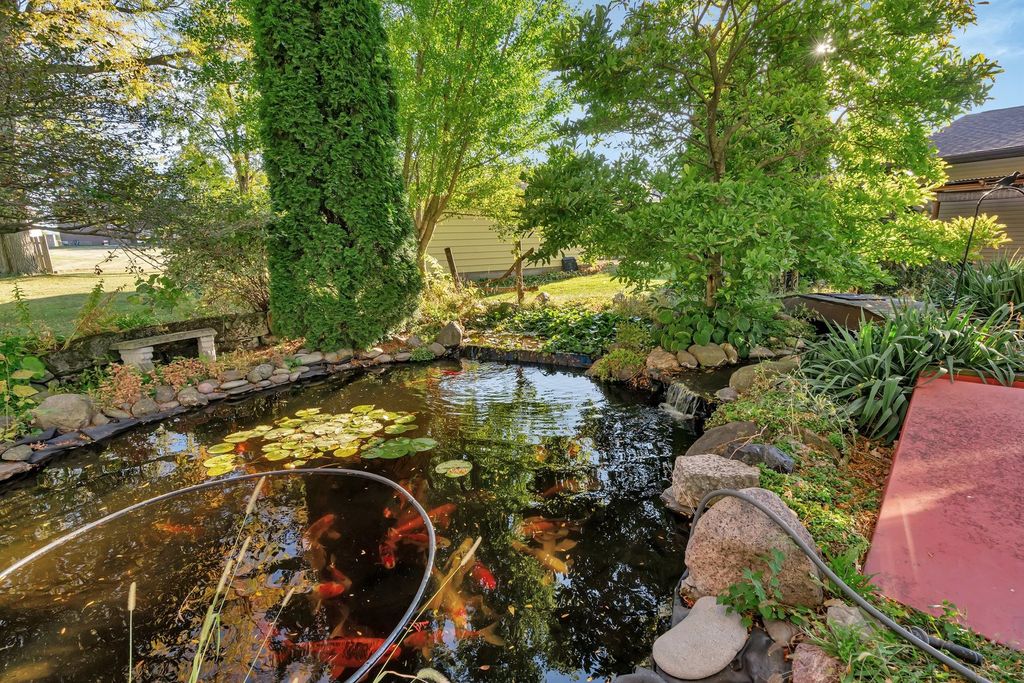 This charming 4-bedroom, 3-bathroom ranch offers 1,928 sq. ft. of living space and includes both a 2-car attached garage, and a separate 2-car insulated garage with attic storage, perfect for extra vehicles or hobbies. The home features updated kitchen and bathrooms, with beautiful hardwood floors throughout the main living area. Enjoy year-round comfort in the all-season room with heated floors and a cozy gas fireplace, as well as the added charm of an ornamental Franklin wood burner. A whole-house generator ensures peace of mind, and the newer roof (approximately 4-5 years old) adds extra value. Outside, relax or entertain on the backyard deck under the pergola or next to the serene koi pond.
