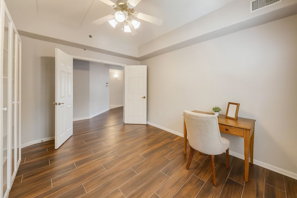 Spacious & Serene Condo Living Just a 1/2 mile from Downtown Barrington. Discover the largest unit in desirable Creekside Pointe-an expansive 1860 sq ft corner condo that combines comfort, space, and a picturesque setting. Boasting 9-foot ceilings, rich wood floors, plantation shutters, and abundant natural light, this unit offers both elegance and functionality. This thoughtfully designed home features a cook's kitchen that will please the most discerning chef with 42" white cabinets, solid surface counters & a pantry. Enjoy entertaining in the spacious family. 2 large bedrooms boast walk-in closets with built-in organizers, and the primary suite offers an en-suite bath with double bowl vanity, soaking tub, and a step-in shower. The work at home professional will be well served in the 3rd bedroom that makes an ideal home office featuring built-in cabinetry. The oversized laundry room offers plenty of storage space with overhead cabinets & utility sink. Relax on your patio and take in the natural beauty of the adjacent future green space with a creek. Two rare indoor garage parking spaces, and two separate storage units provide the convenience and flexibility today's buyer's demand. Whether you're downsizing, or seeking a low-maintenance lifestyle close to shops, restaurants, and the Metra, this condo checks every box. Beautiful park like setting currently under construction next door with creek. Link to Village info on project on village website.