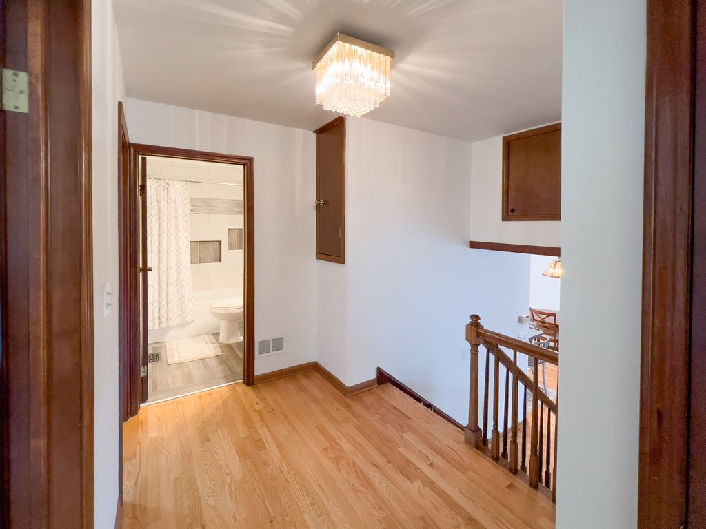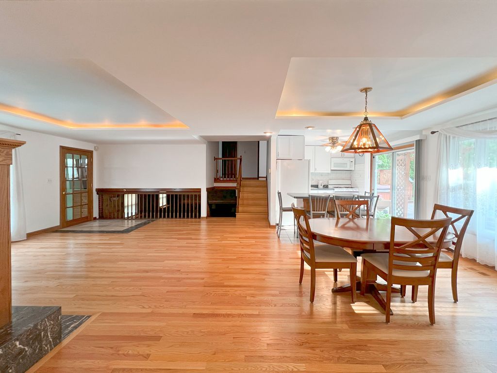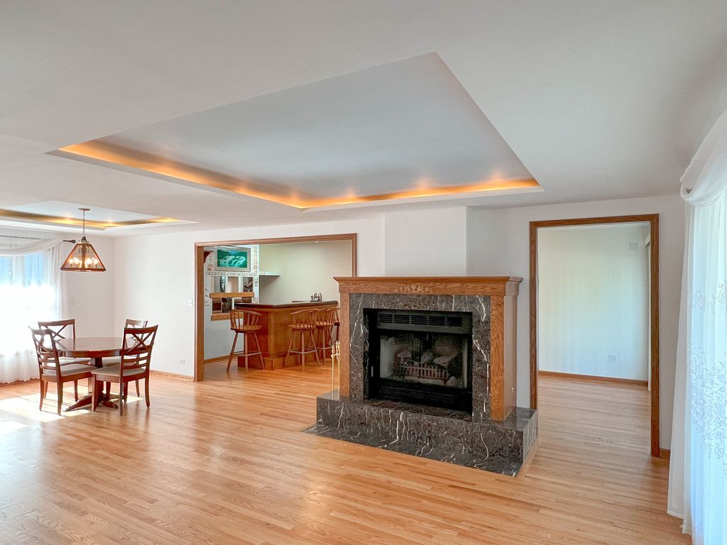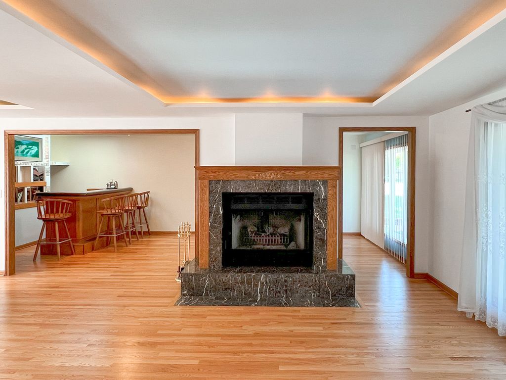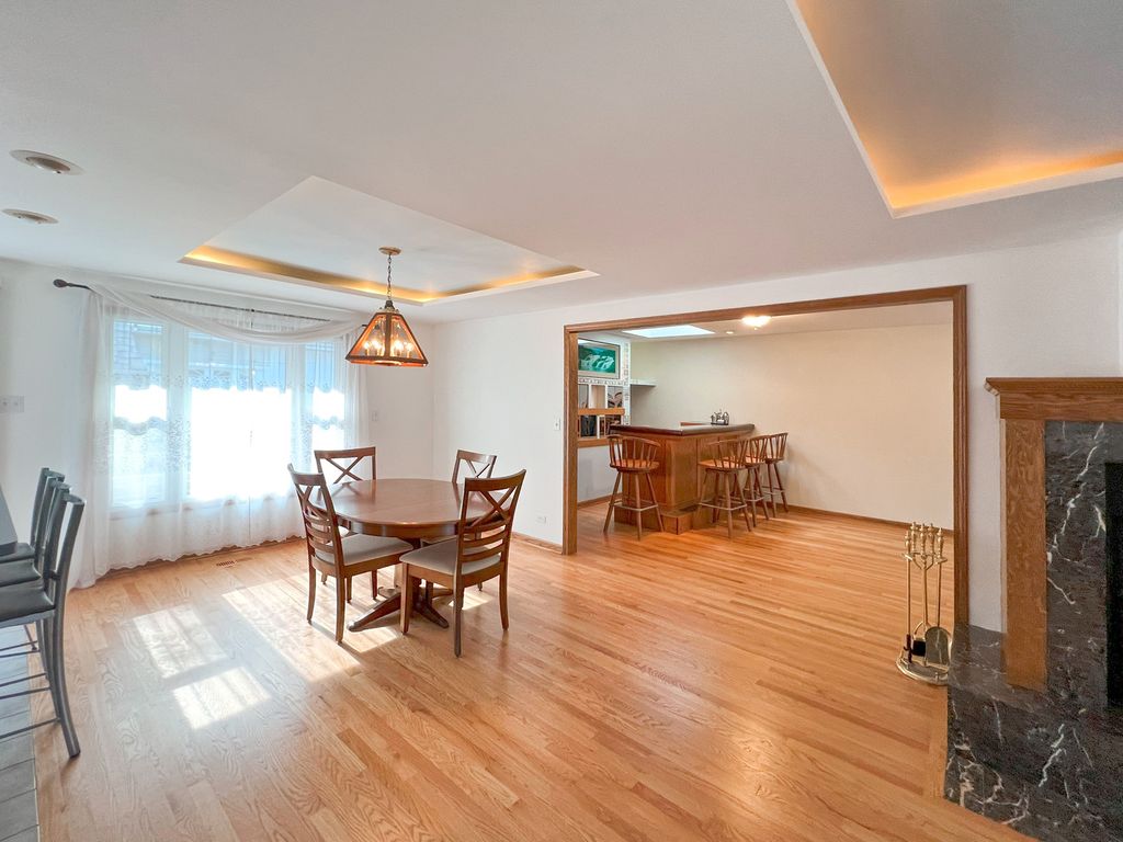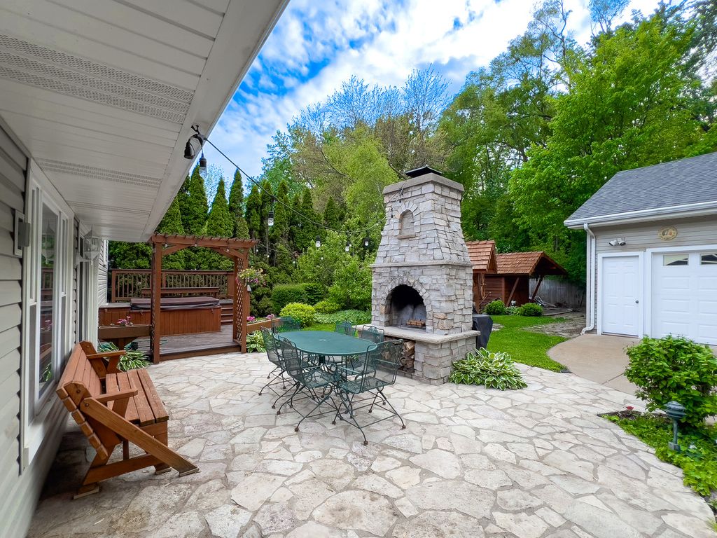 Welcome to your Roselle retreat - an effortlessly stylish and move-in-ready 3-bedroom, 2-bath home designed for modern living and unforgettable entertaining. Freshly painted with beautifully refinished hardwood floors throughout, every inch of this move-in-ready gem offers the perfect blend of comfort, charm, and functionality. Step into the bright, open - concept interior and discover a warm gathering space that's as practical as it is welcoming. A dedicated bar area with seating serves as a centerpiece for socializing, while the sliding glass door opens to a beautifully landscaped backyard oasis, creating a seamless indoor/outdoor experience ideal for hosting family and friends. Highlights You'll Love: Inside, you'll find light-filled living spaces with beautifully rustic finishes and newly updated bathrooms that offer a spa-like feel every day. The open-concept layout is ideal for both daily living and entertaining, featuring a welcoming bar area perfect for casual meals or cocktail hours, with a sliding glass door that opens seamlessly to the backyard for effortless indoor/outdoor gatherings. A spacious 2-car garage includes an upper-level storage room-perfect for seasonal decor, gear, or even a future workspace. Outside, the fully fenced backyard is a private sanctuary, thoughtfully landscaped with a thriving garden, cozy outdoor fireplace, relaxing hot tub, and a charming shed-perfect for both entertaining and quiet relaxation. Perfectly Placed: Live steps away from the scenic Seasons 4 Park and Clauss Farm Recreation Area-an absolute dream for active families and sports recreation enthusiasts. You are just a 5-minute drive to Roselle and Bloomingdale's vibrant downtown districts, filled with unique shops, cafes, and community events. Top-rated Lake Park High School (West Campus) is right nearby, and Meacham Grove Forest Preserve is just a short bike ride away for nature lovers who enjoy hiking or biking around Maple Lake. Everything Within Reach: Whether you are hosting under the stars, enjoying a peaceful evening in the hot tub, or walking to nearby parks and shopping, this home offers the perfect blend of comfort, convenience, and lifestyle. Welcome home.