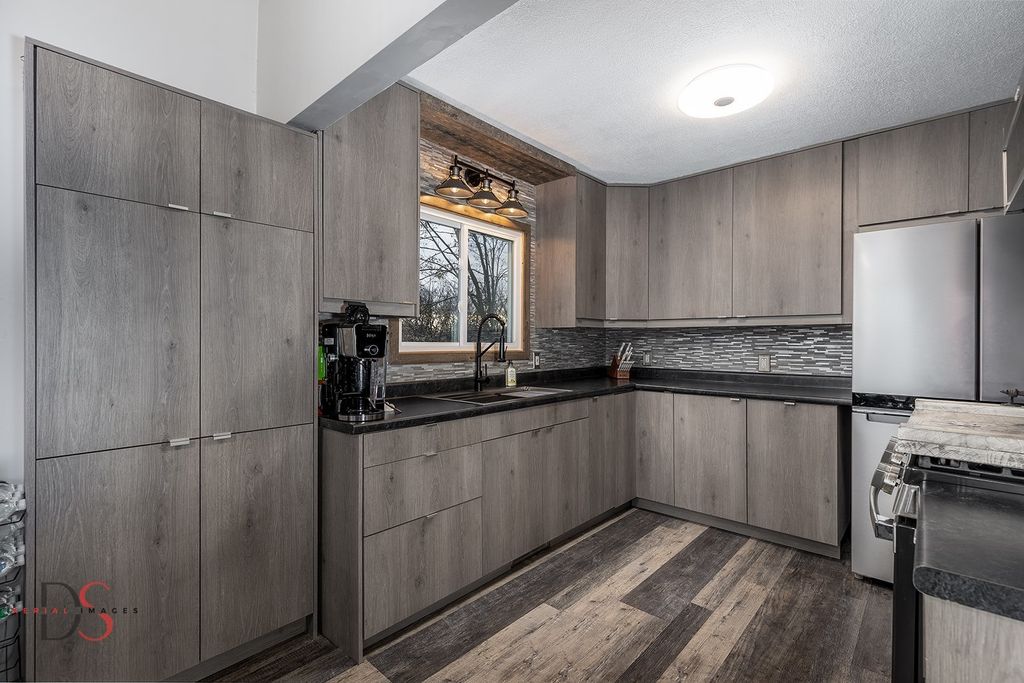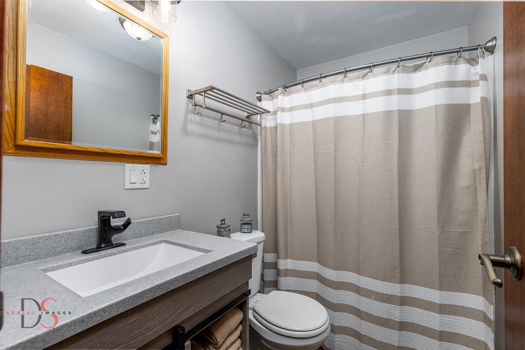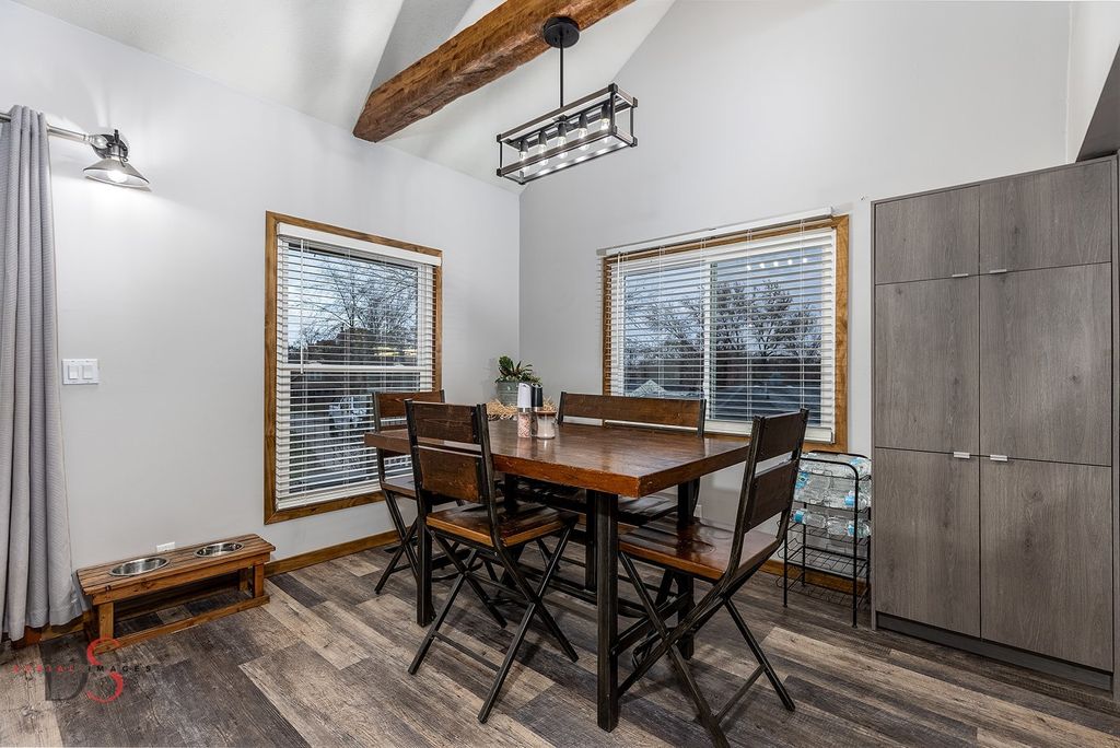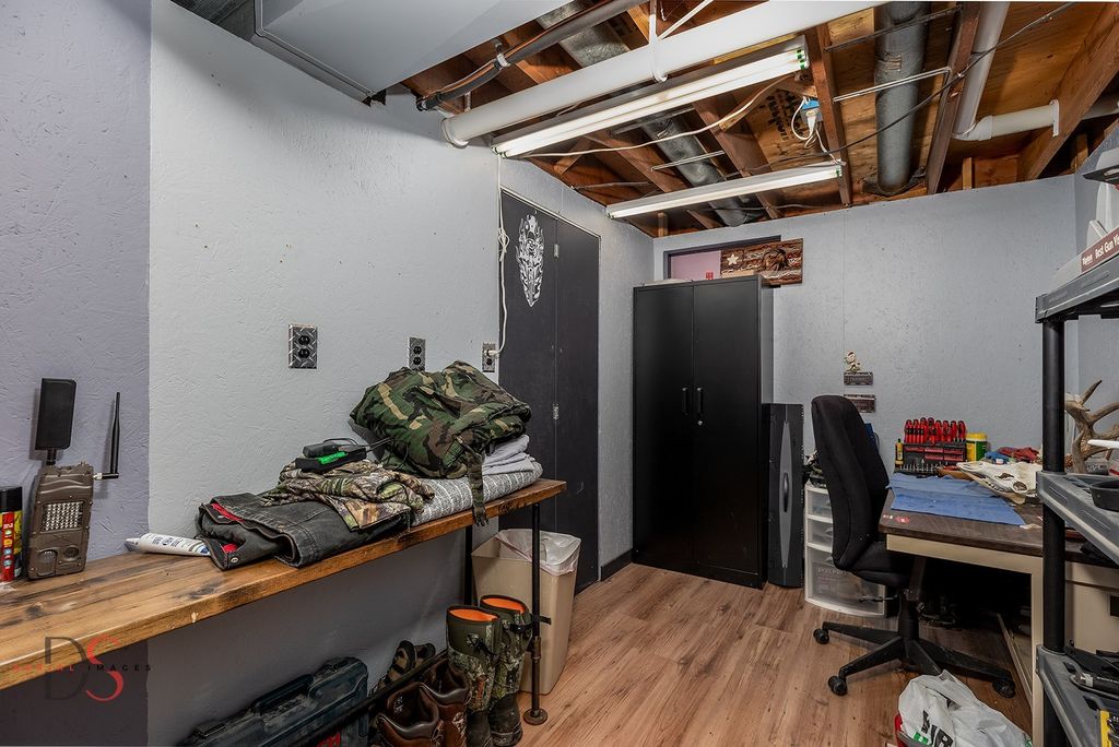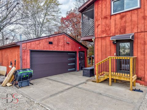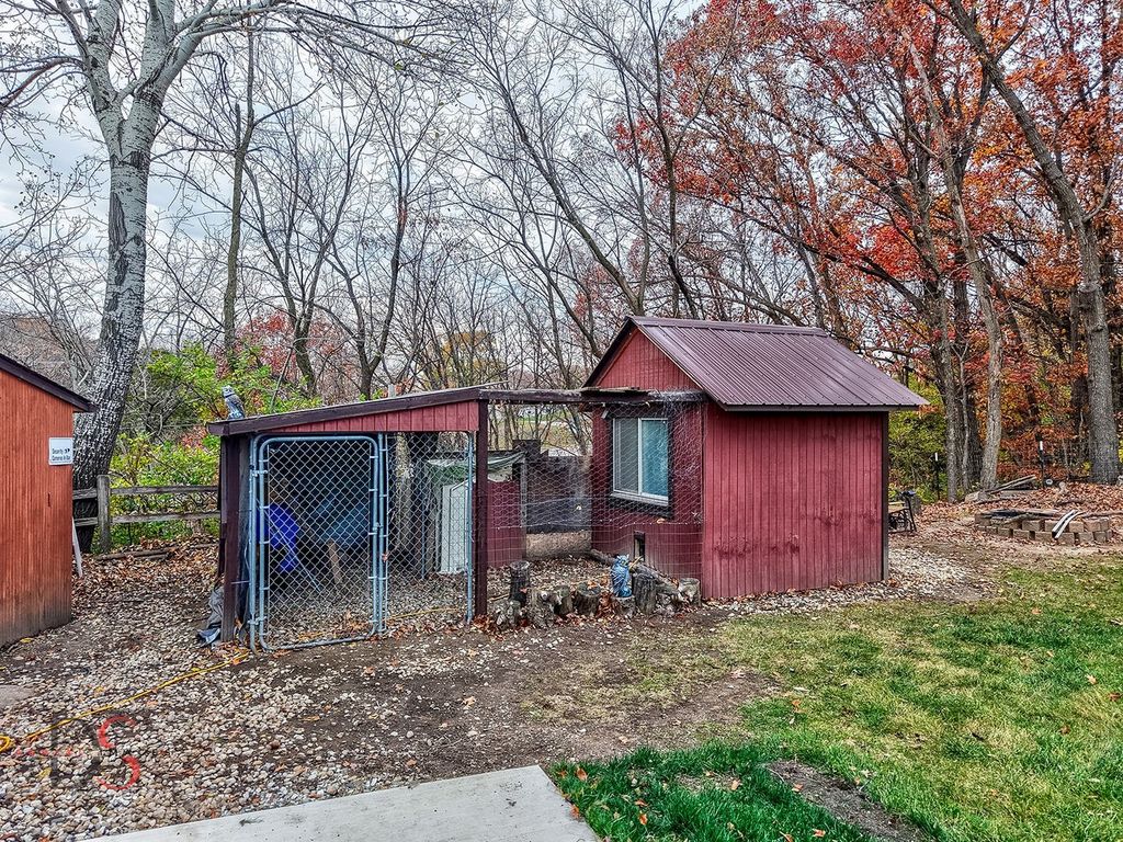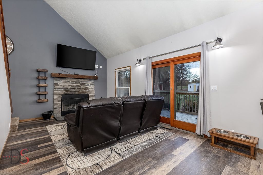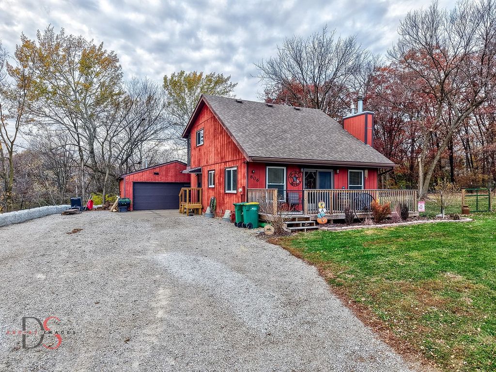 Charming 3 bed, 2 bath, 1 1/2 story cedar home situated on a spacious .56 acre lot ~ This beautifully maintained property offers a perfect blend of comfort, style and functionality ~ The main level offers an updated kitchen with stainless steel appliances; included ~ Open concept dining room / living room with vaulted ceilings and a wood burning fireplace ~ Main floor master suite with private bathroom and sliders leading out to the back deck ~ Convenient main floor laundry ~ New vinyl plank flooring and interior doors on the first floor ~ The second level offer two additional bedrooms each having access to the distinctive private balcony and an additional full bath ~ The full, partially finished basement offers a family room with gas fireplace and dry bar ~ Bonus room with potential use for a 4th bedroom ~ Workshop, mechanical room and storage room ~ Heated 2 1/2 car detached garage ~ New front porch and back deck ~ New poured concrete back patio ~ New retaining wall 2024 ~ New roof 2019 ~ Shed and a chicken coop; chickens can stay ~ This property combines modern updates with rustic harm, offering ample indoor and outdoor living space in a peaceful setting