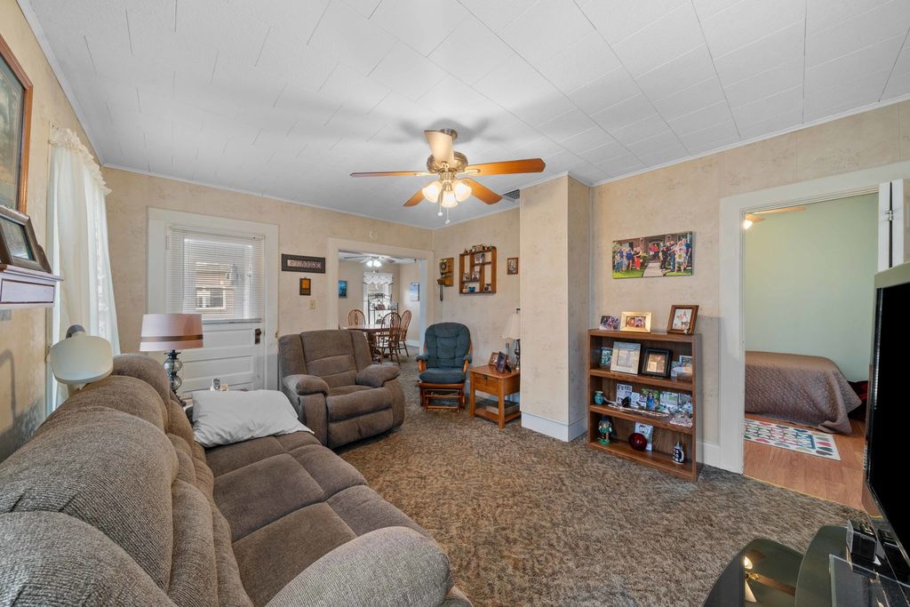 This charming 3-bedroom, 1-bath home offers a wonderful opportunity to make it your own. Enjoy the inviting 3-season front porch-perfect for relaxing, entertaining, or extending your living space. Convenient main-level living includes a modest bedroom and a full bathroom. The kitchen was updated in the early 2000s and features modern vinyl windows throughout. Additional updates include a new roof installed in 2021, forced-air furnace and central A/C, and low-maintenance vinyl siding. A solid home with great bones and excellent potential in a desirable Earlville location!