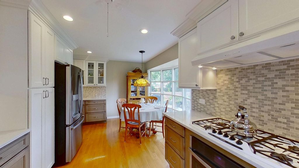 Welcome to this beautifully updated home nestled in the vibrant and sought-after Reseda neighborhood. Meticulously maintained and move in ready. Step inside to a light-filled living and dining room combination, freshly painted and framed by soaring ceilings that create an airy and inviting ambiance. The heart of the home-a fully remodeled kitchen (2020)-is a true showstopper, thoughtfully designed for both form and function. Imagine mornings in the sun-drenched breakfast nook, surrounded by high-end finishes including a Thermador cooktop, Bosch dishwasher, Blanco sink, Kohler faucet, and custom pull-out cabinetry with soft-close doors. The flowing floor plan leads to a cozy main-level family room, conveniently adjacent to a tastefully updated powder room (2018). Sliding doors open to a new patio and sidewalk (2025), offering seamless indoor-outdoor living. The backyard is a private oasis with lush, mature landscaping-perfect for entertaining or enjoying quiet moments in the garden. A newly installed, insulated Tuff Shed (2023) provides extra storage. Upstairs, you'll find three generously sized bedrooms, all featuring hardwood flooring. The expansive primary suite is a serene retreat, offering abundant natural light, space for a sitting area, and a luxurious, remodeled ensuite bathroom (2023) with dual sinks and a spacious mirrored closet. With countless thoughtful upgrades throughout, this home is the perfect blend of comfort, style, and functionality. A rare find-ready for its next chapter.