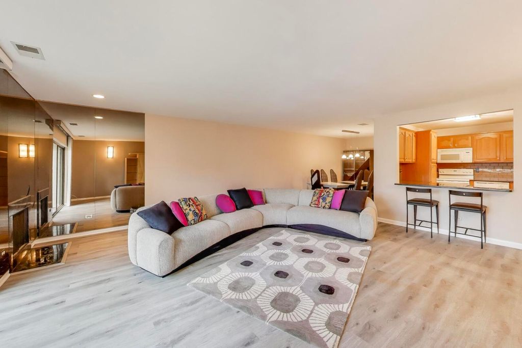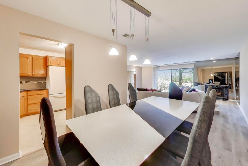 Experience easy living in this spacious and beautifully maintained 2 BR, 2 BTH condo in highly sought after Pheasant Creek! Enter into a welcoming foyer with great closets into the open concept living room with fireplace and separate adjacent dining room for gracious entertaining. Sliders from the living room lead to the patio where you can enjoy your morning coffee! The kitchen features lots of storage, granite countertops, marble floor and an oversized opening with a breakfast bar leading to the living space. This allows for a light and open feel to the kitchen. The luxuriously sized Primary bedroom with its ensuite bath features marble floors, an oversized shower with a beautiful glass shower door and generous counter space. There is also a vanity area and 3 generous closets. The second bedroom, which is currently being used as a den, can also be used as an office. All updates and improvements come from beautiful Studio 41 in Northbrook. An extra storage locker (1B) and laundry facilities are conveniently located on the same floor. Covered parking is available for a monthly fee. Additional outdoor parking is included. Pheasant Creek is in a prime location near I-94 and I-294, restaurants, shops, award winning schools, transportation and everything that Northbrook has to offer. The complex offers, beautifully landscaped grounds, including ponds, playground, 2 inground pools, tennis courts, pickleball court and a lovely clubhouse that can be rented for your special occasions. Management is on-site. Quick closing is possible! This is the place that you will love to call home!